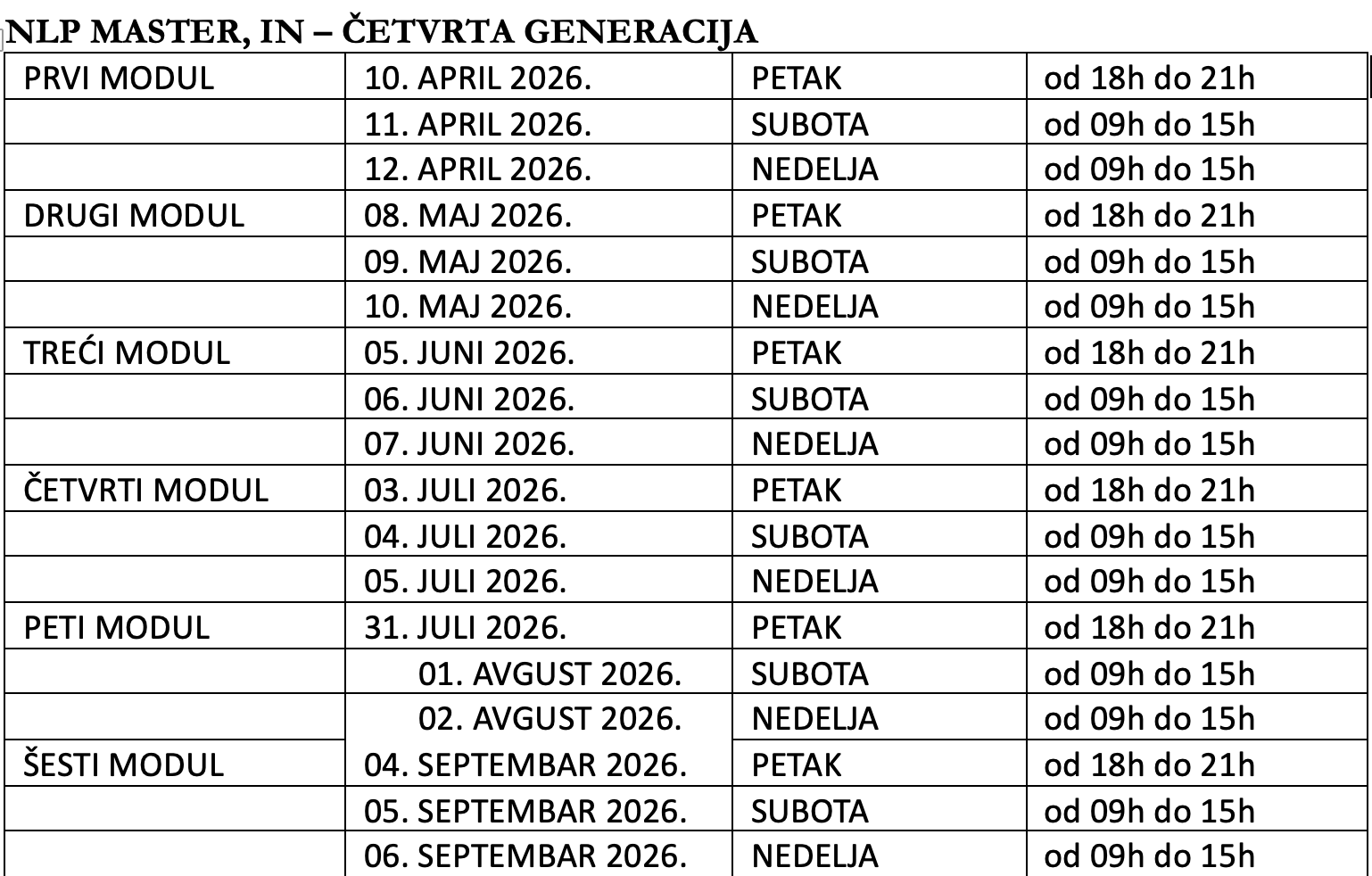 - Najava: NLP PRACTITIONER, IN – DESETA GENERACIJA (online)30 Novembra, 2025